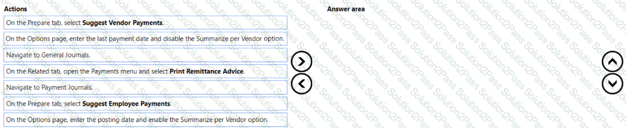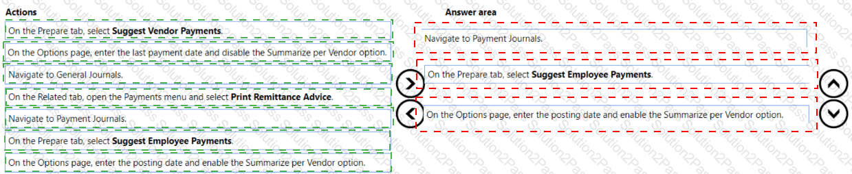 In which order should you perform the actions? To answer, move all the actions from the .list of actions and arrange them in the correct order.