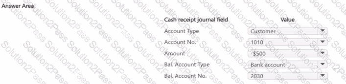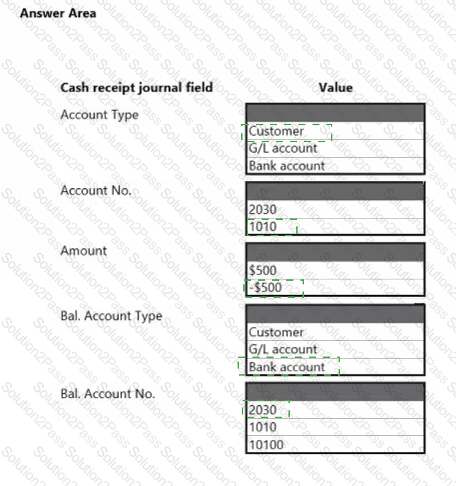 A company uses Dynamics 365 Business Central. You are recording incoming payments from customers.