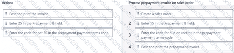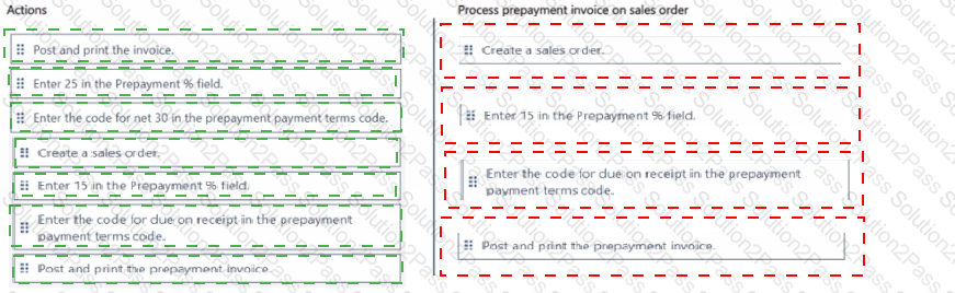 How should you complete each action? To answer, move the appropriate recurring sales line configurations to the correct actions. You may use each recurring sales line configuration once, more than once, or not at all. You may need to move the split bar between panes or scroll to view content.