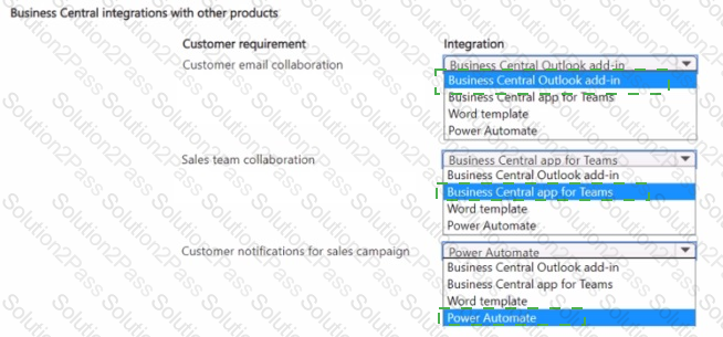 Which Microsoft integration aligns with each requirement? To answer, select the appropriate options in the answer area.