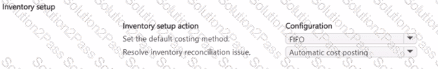 Which two inventory setup configurations should you use? To answer, select the appropriate options in the answer area.