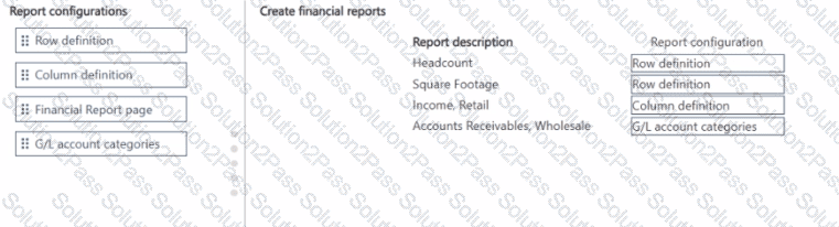 Which report configuration should you use to add the report descriptions lo financial reports? To answer, move the appropriate report configurations to the correct report descriptions. You may use each report configuration once, more than once, of not at all. You may need to move the split bar between panes or scroll to view content