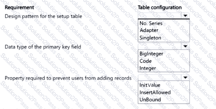 Which table configurations should you use? To answer, select the appropriate options in the answer area.