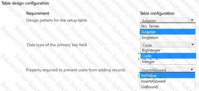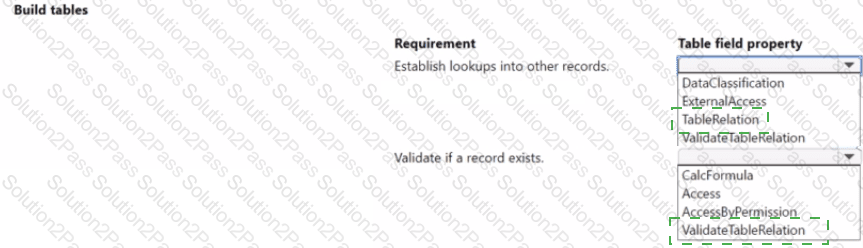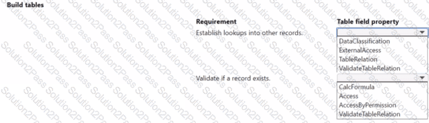 Which table field property should you use? To answer, select the appropriate options in the answer area.