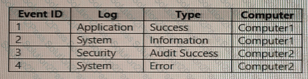 The computers have the logged events shown in the following table.