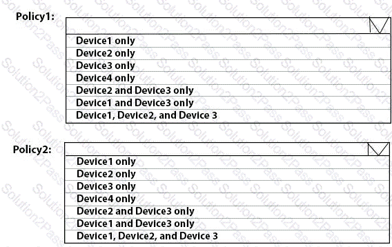 To which devices do Policy1 and Policy2 apply? To answer, select the appropriate options in the answer area.