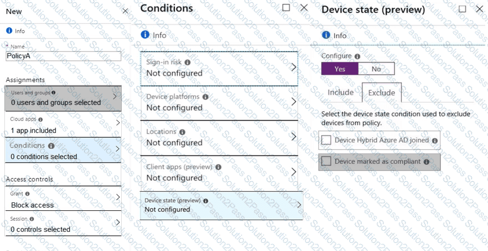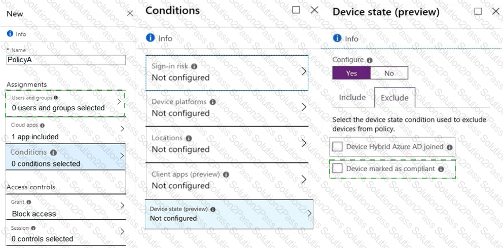 Which two settings should you configure in the policy? To answer, select the appropriate settings in the answer area.