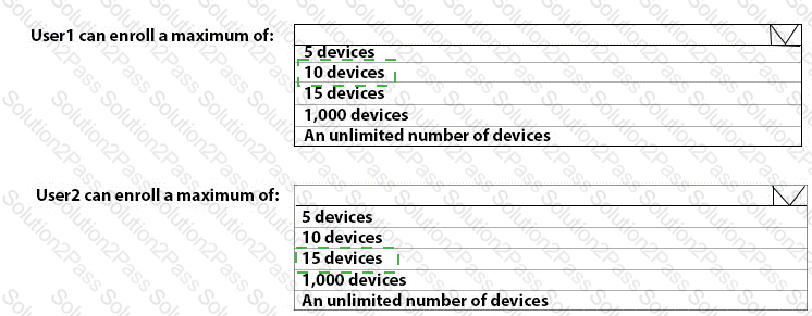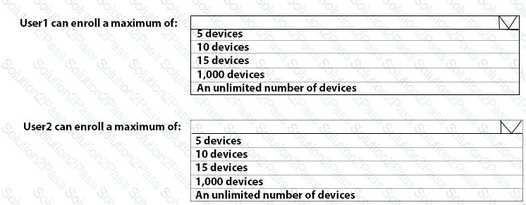 What is the maximum number of devices that User1 and User2 can enroll in Intune? To answer, select the appropriate options in the answer area.