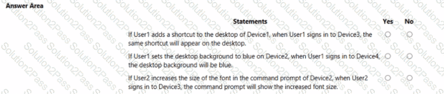 For each of the following statements, select Yes if the statement is true. Otherwise, select No. NOTE: Each correct selection is worth one point.