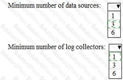 What is the minimum number of data sources and log collectors you should create from Microsoft Cloud App Security? To answer, select the appropriate options in the answer area.