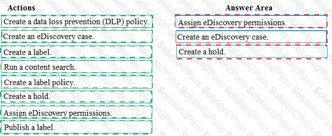 Which three actions should you perform in sequence from the Security & Compliance admin center? To answer, move the appropriate actions from the list of actions to the answer area and arrange them in the correct order.