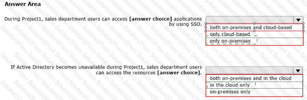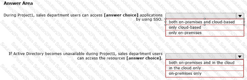 You need to ensure that all the sales department users can authenticate successfully during Project1 and Project2.