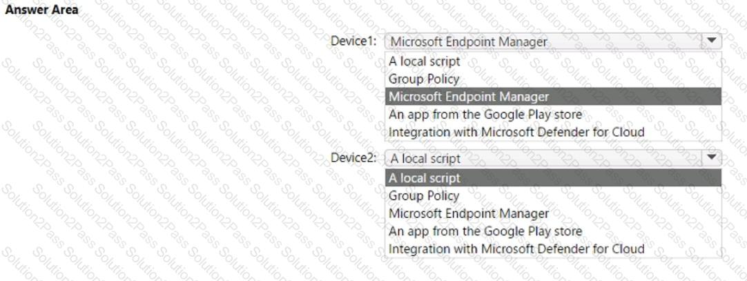 What should you use to onboard each device? To answer, select the appropriate options in the answer area.
