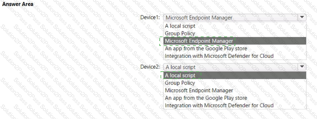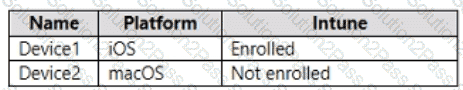 You have a Microsoft 365 tenant that contains devices enrolled in Microsoft Intune. The devices are configured as shown in the following table.