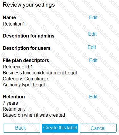 You create a retention label named Retention1 as shown in the following exhibit.