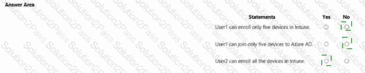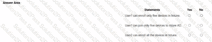 You have 2,500 Windows 10 devices and a Microsoft 365 E5 tenant that contains two users named User1 and User2. The devices are not enrollment in Microsoft Intune.