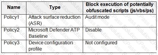 You have a Microsoft 365 tenant that contains a Windows 10 device named Device1 and the Microsoft Endpoint Manager policies shown in the following table.