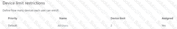 In Microsoft Endpoint Manager, the Device limit restrictions are configured as shown in the following exhibit.