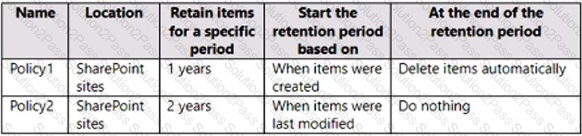 You have the retention policies shown in the following table.