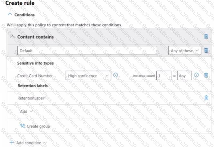 You configure a data loss prevention (DLP) policy named DLP1 with a rule configured as shown in the following exhibit.