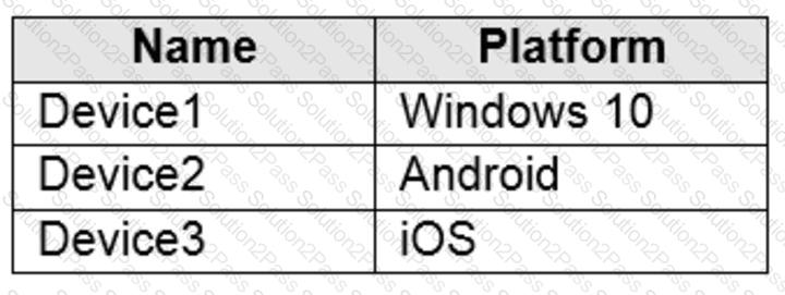 You have a Microsoft 365 E5 subscription that uses Microsoft Intune and contains the devices shown in the following table.