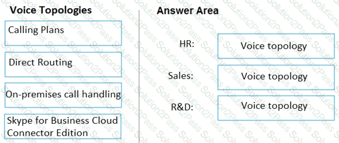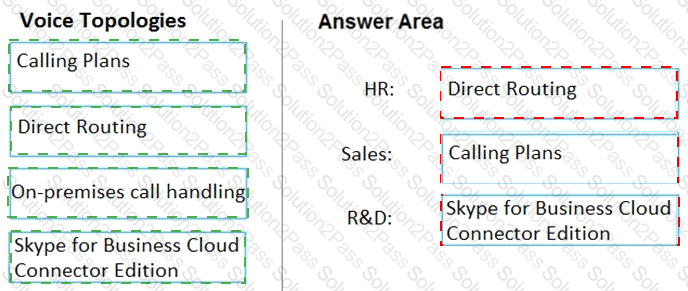 You need to recommend a voice topology for the departments. The topology must meet the calling requirements and the security requirements.