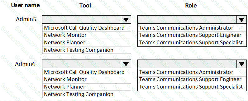 Which tool and role should you recommend for each user? To answer, select the appropriate options in the answer area.
