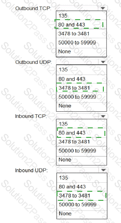 Which inbound and outbound ports should you recommend? To answer, select the appropriate options in the answer area.