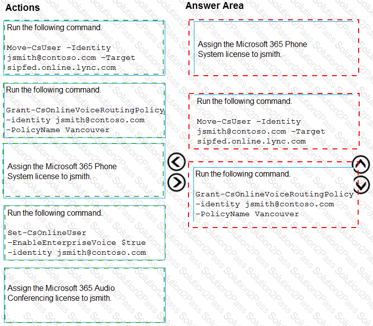 You need to migrate a Vancouver facility user named jsmith from Skype for Business Server to Teams.