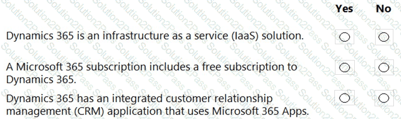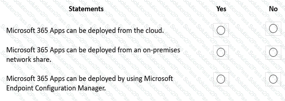 For each of the following statements, select Yes if the statement is true. Otherwise, select No.