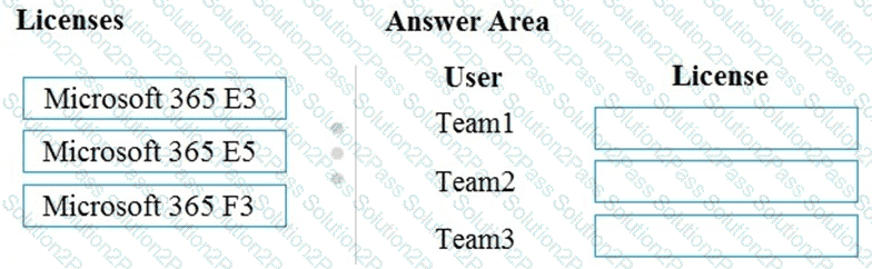 Match each license to the appropriate users. To answer, drag the appropriate license from the column on the left to its appropriate user on the right. Each license may be used once, more than once, or not at all.