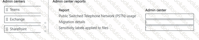 Match each admin center in Microsoft 365 to its report. To answer, move the appropriate admin center from the column on the left to its report on the right. You may use each admin center once, more than once, or not at all.