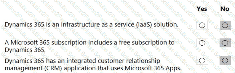 Instructions: For each of the following statements, select Yes if the statement is true. Otherwise, select No.