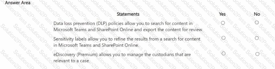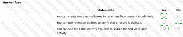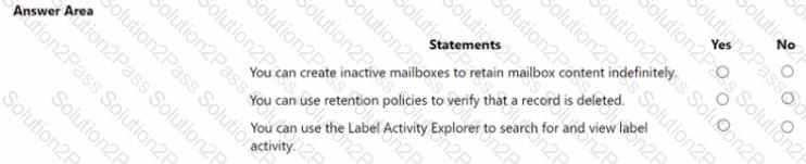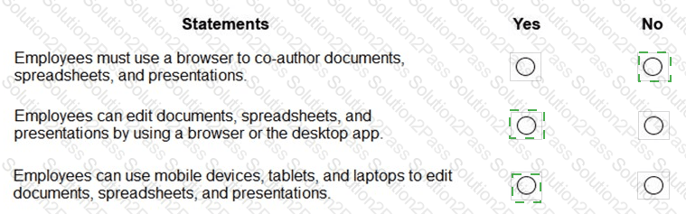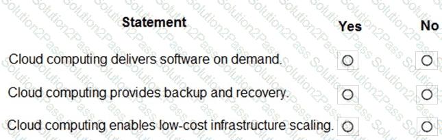 For each of the following statements, select Yes if the statement is true. Otherwise, select No.