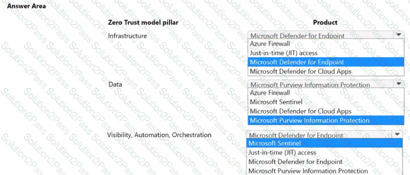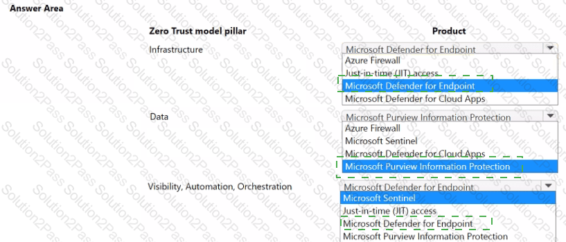 You need toidentify the Microsoft 365 products that the company can use for each Zero Trust model pillar.