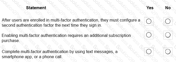 An organization has a Microsoft 365 subscription. You plan to implement multi-factor authentication. For each of the following statements, select Yes if the statement is true. Otherwise, select No.