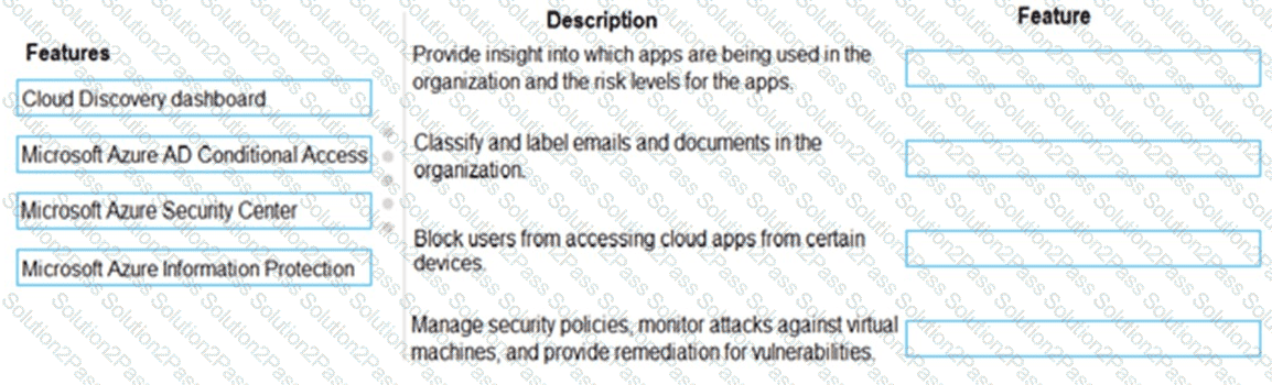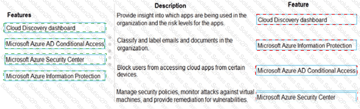 Match each feature to the correct description. Toanswer, drag the appropriate feature from the column on the left to its description on the right. Each feature may be used once, more than once, or not at all.