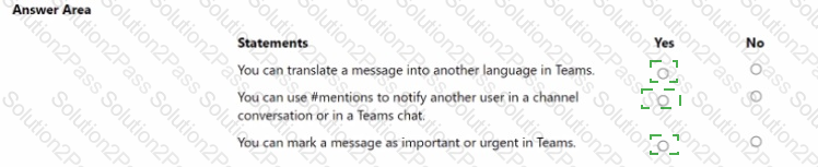 For each of the following statements, select Yes if the statement is true. Otherwise, select No.