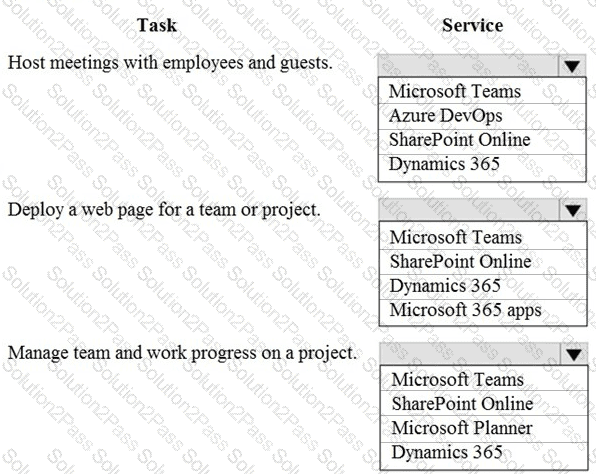 Which solution should you choose for each task? Toanswer, select the appropriate options in the answer area.