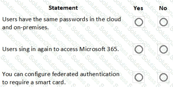 You are a Microsoft 365 administrator for a company. The company implementsfederated authentication and Azure AD Connect.