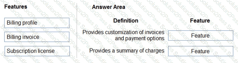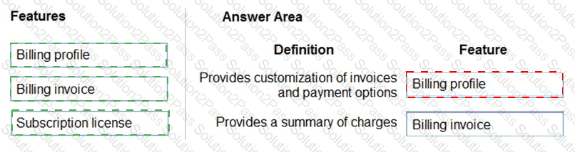 You need to identify billing and purchasing features in Microsoft 365.