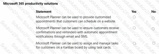 A company plans to implement Microsoft 365 to manage projects and appointments with customers.