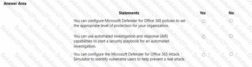 A company plans to implement Microsoft Defender forOffice 365.