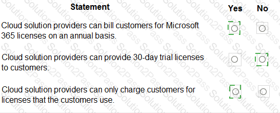 For each of the following statements, select Yes if the statement is true. Otherwise, select No.