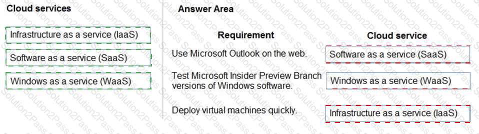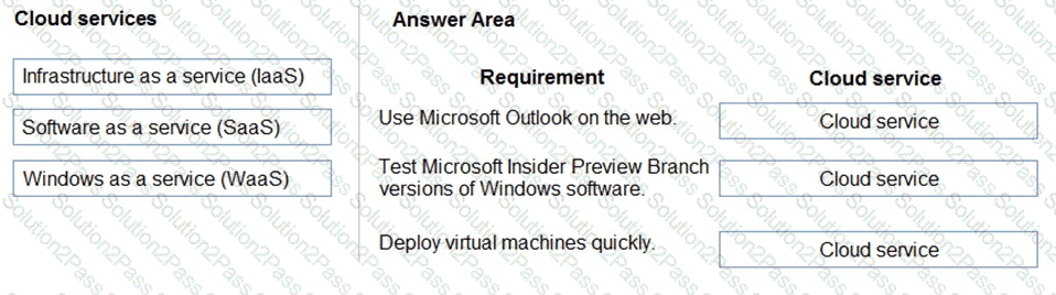 Which cloud services should you use? To answer, drag the appropriate cloud services to the correct requirements. Each cloud service may be used once, more than once, or not at all. You may need to drag the split barbetween panes or scroll to view content.
