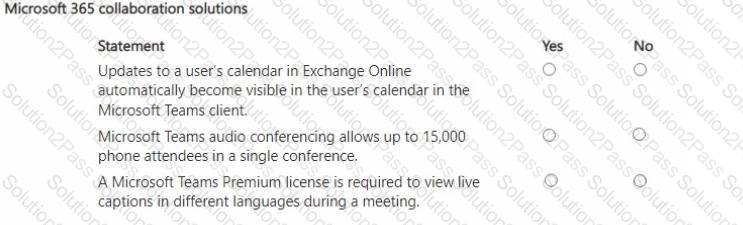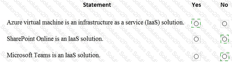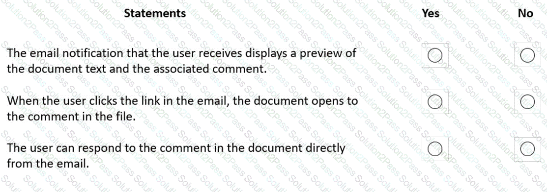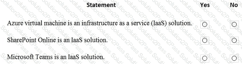 For each of the following statements, select Yes if the statement is true. Otherwise, select No.