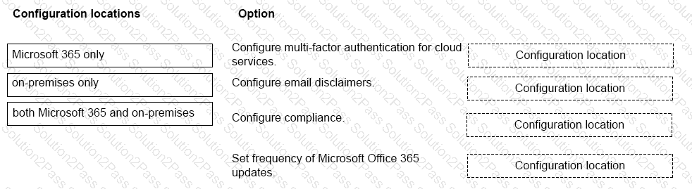 Match each item to the location where it will be managed. To answer, drag the appropriate item from the column on the left to its location on the right. Each item may be used once, more than once, or not at all.