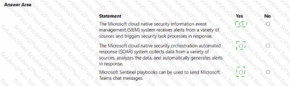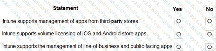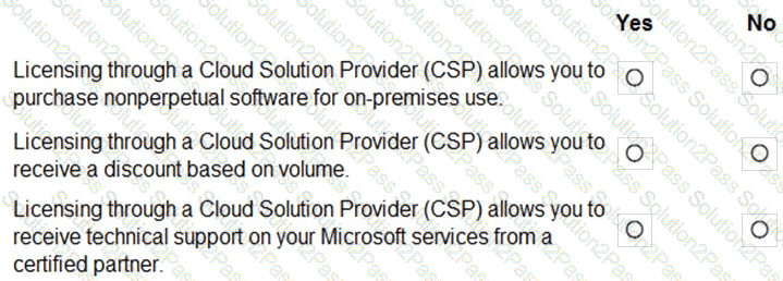 For each of the following statements, select Yes if the statement is true. Otherwise, select No.