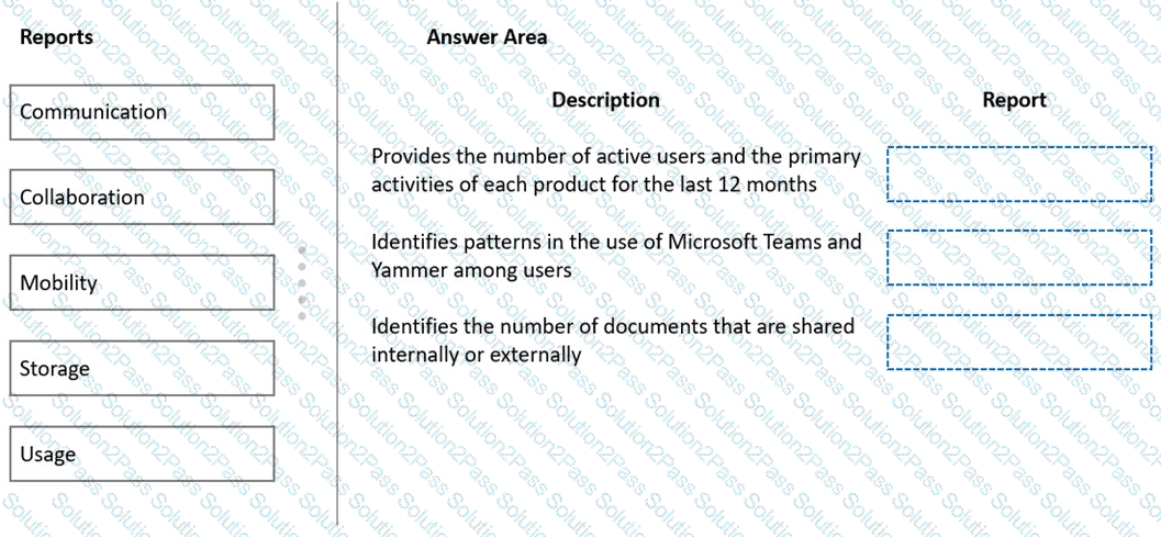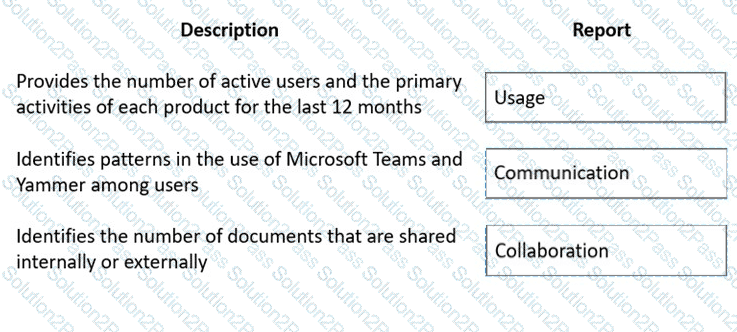 A company plans to use the reports that are available in Microsoft 365 usage analytics.