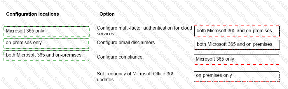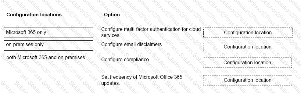 Match each item to the location where it willbe managed. To answer, drag the appropriate item from the column on the left to its location on the right. Each item may be used once, more than once, or not at all.